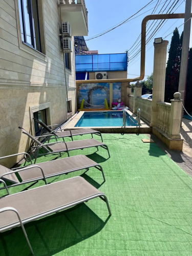 На территории — детская площадка, подогреваемый бассейн, бильярд, спортзал и парковка.