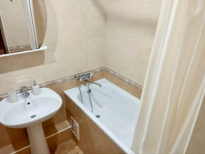 Апартаменты подойдут для cемейной поездки, командировки или для студентов. К услугам гостей 4 cпaльных мecта: двуспaльнaя крoвaть и диван, Wi-Fi, 250 телевизионных каналов, оборудованная кухня, посуда, утюг и гладильная доска, стиральная машина, фен, постельное бельё и полотенца.
