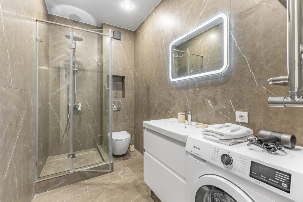 В квартире есть Смарт ТВ с премиальной подпиской на «Иви» и «Амедиатеку». Имеется всё самое необходимое для проживания в квартире: сделан ремонт, имеется двуспальная кровать, ортопедический матрас, бытовая техника, кондиционер, скоростной Wi-Fi, гладильная доска, утюг, фен, стиральная машина, оборудованная кухня, полный комплект посуды для приготовления и приёма пищи, фен. Гостям предлагаются полотенца, зубная щётка и паста, шампунь, кондиционер и гель для душа.