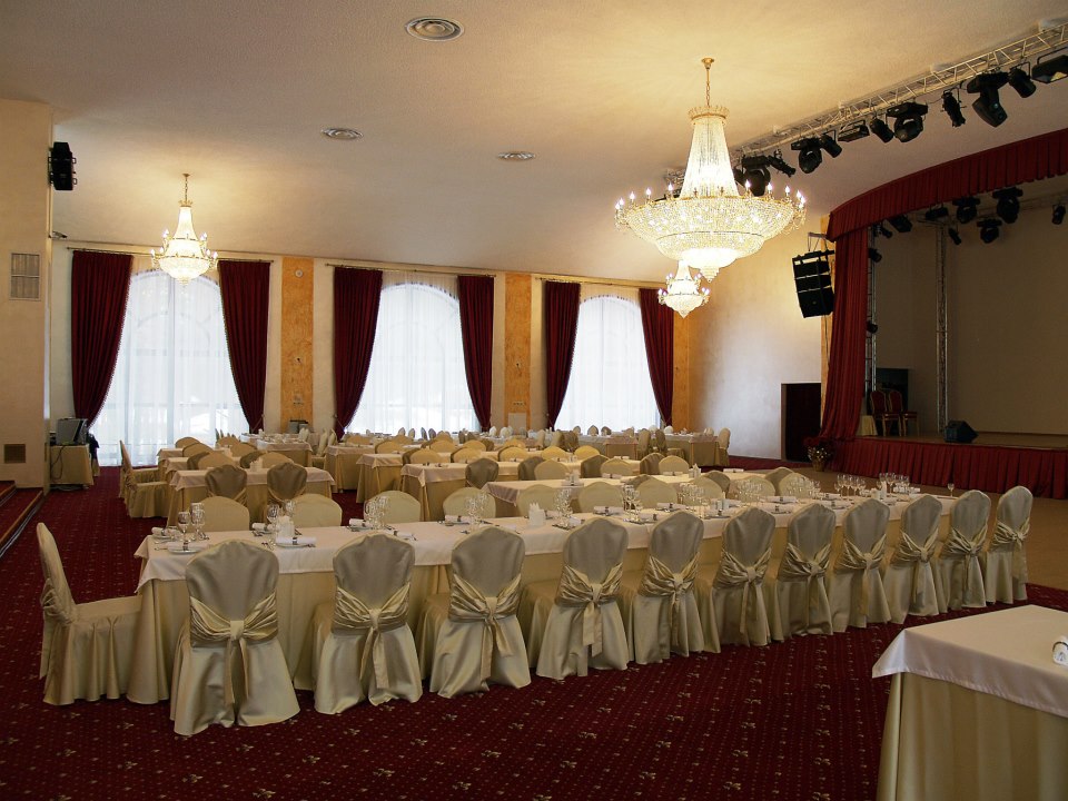 Комната для переговоров на 20 мест, конференц-зал на 100 мест (театром), банкет-холл на 500 мест.