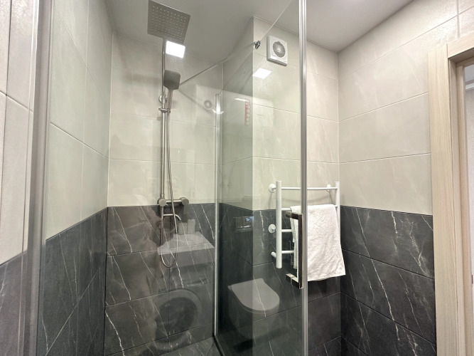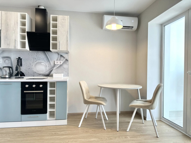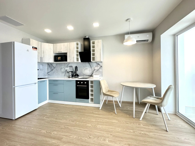 В распоряжении гостей: двуспальная кровать, односпальный раскладной диван, кондиционер, полностью укомплектованная кухонная зона, фен и утюг, кабельное телевидение и высокоскоростной Wi-Fi. Также есть ванные принадлежности: зубные наборы, гель для душа и шампунь. При длительном проживании предоставляется бесплатная смена белья и уборка квартиры. Дополнительные услуги: полный комплект отчётных документов для командировочных гостей, бесконтактное заселение в любое время.
