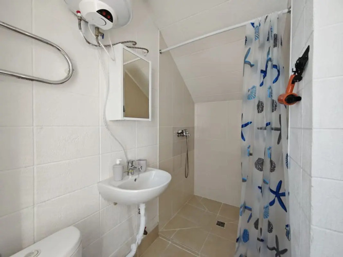 В ванной комнате имеются полотенца для каждого гостя, фен, одноразовые шампунь, гель для душа, жидкое мыло, также есть стиральная машина, водонагреватель, сушилка, утюг и гладильная доска.