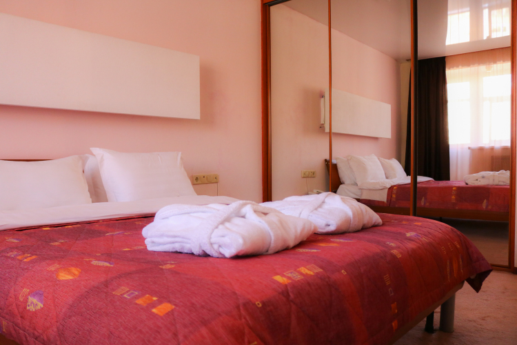 Выбранный тип кровати в номере не гарантируется. В отеле нет полноценных двуспальных кроватей — могут быть только сдвинутые вместе односпальные. В категории Superior и выше по запросу гостям могут предоставить общий топпер на сдвинутые кровати.