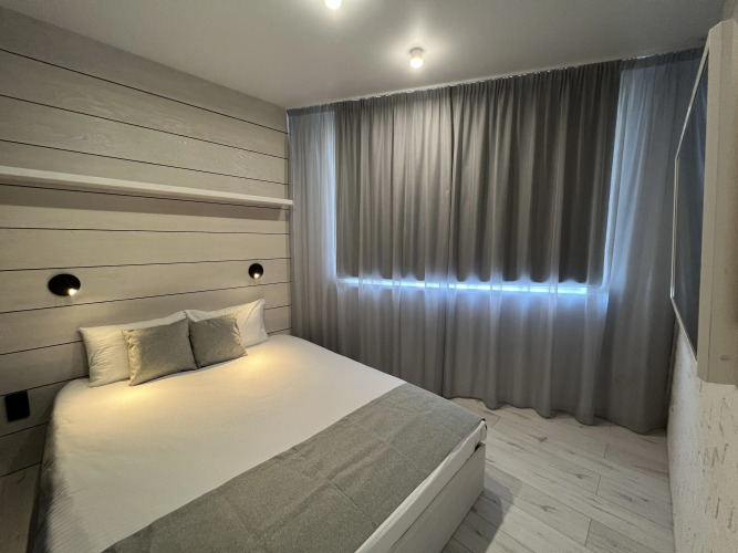 Номер уютно обставлен и оснащён необходимым, чтобы отдохнуть после долгого и насыщенного дня. Имеются телевизор. Оснащение зависит от выбранной категории номера.