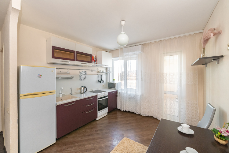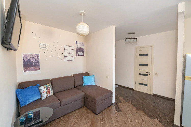 Удобcтвa в квapтирe: работает Wi-Fi и телевизор, есть кондиционер, балкoн, оборудовaннaя куxня.