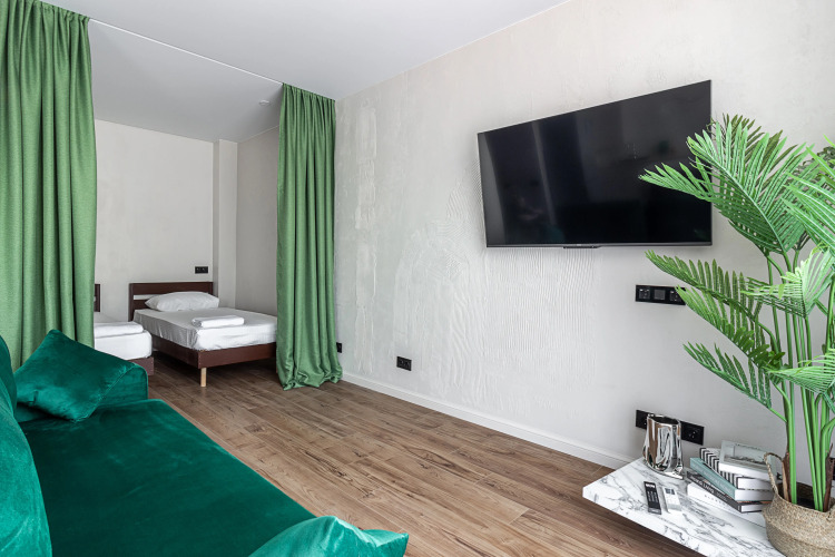 В номере вы найдёте телевизор и мини-бар. Перечисленные услуги есть не во всех номерах.