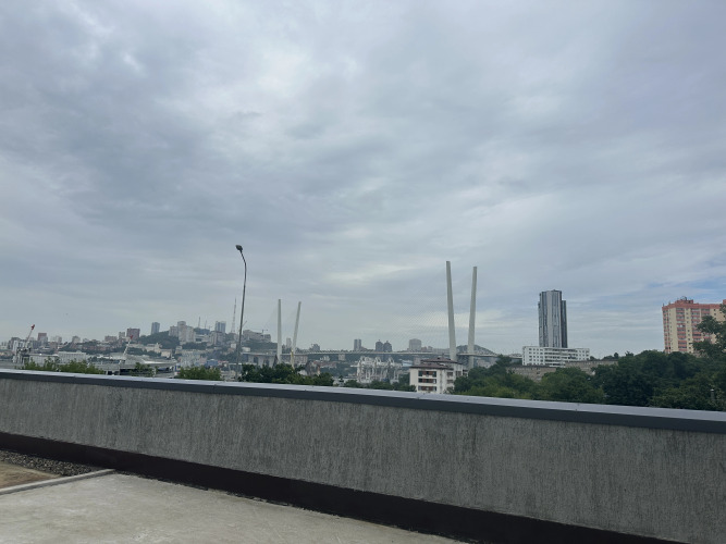 Квартира «Современная однокомнатная с видом на море» располагается во Владивостоке. В доме есть продуктовый магазин. В шаговой доступности — Морской рыбный порт, Золотой мост, Мариинский театр оперы и балета, торговые центры, ресторан и остановки общественного транспорта. Дом расположен вблизи транспортных развязок, что позволяет добраться до центра города и до острова Русский на общественном транспорте.