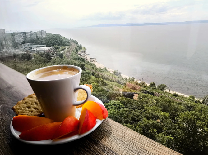 Квартира Стильные апартаменты с видом на море, адрес на карте Владивосток, проспект 100-летия Владивостока, д. 163, с описанием номеров и возможностью онлайн бронирования на сайте ВашОтель.RU , цены проживания и удобства.