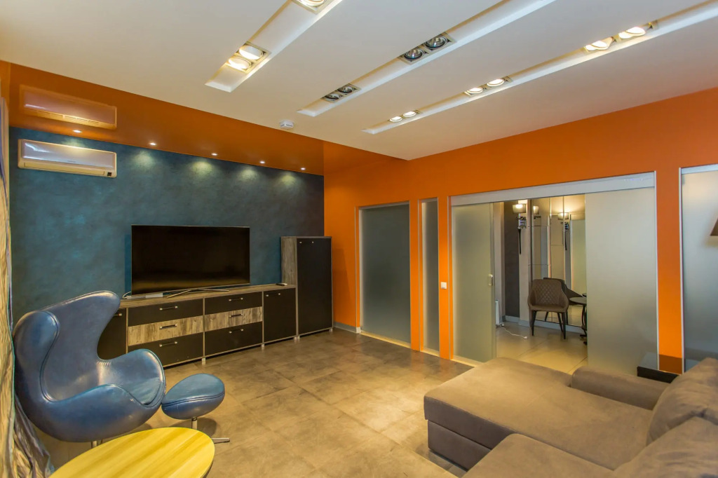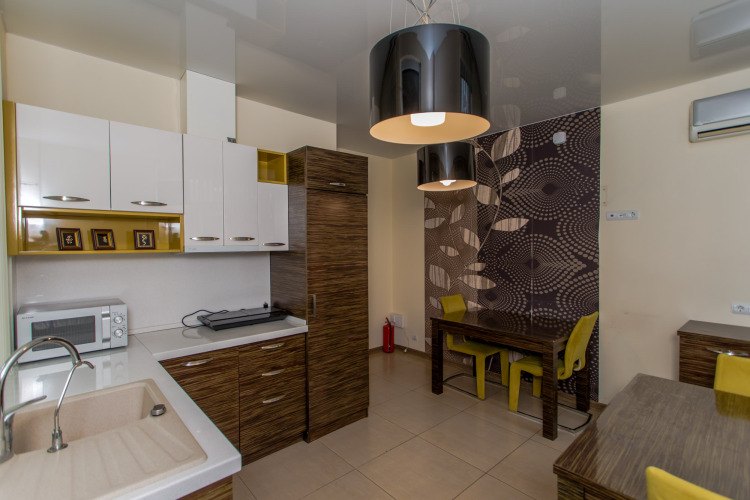 Также имеются: телевизор со Smart TV, кондиционер, бесплатный Wi-Fi, набор полотенец, гладильная доска и утюг, фен. На кухне холодильник, микроволновая печь, чайник, электрическая плита, набор посуды и столовых приборов.