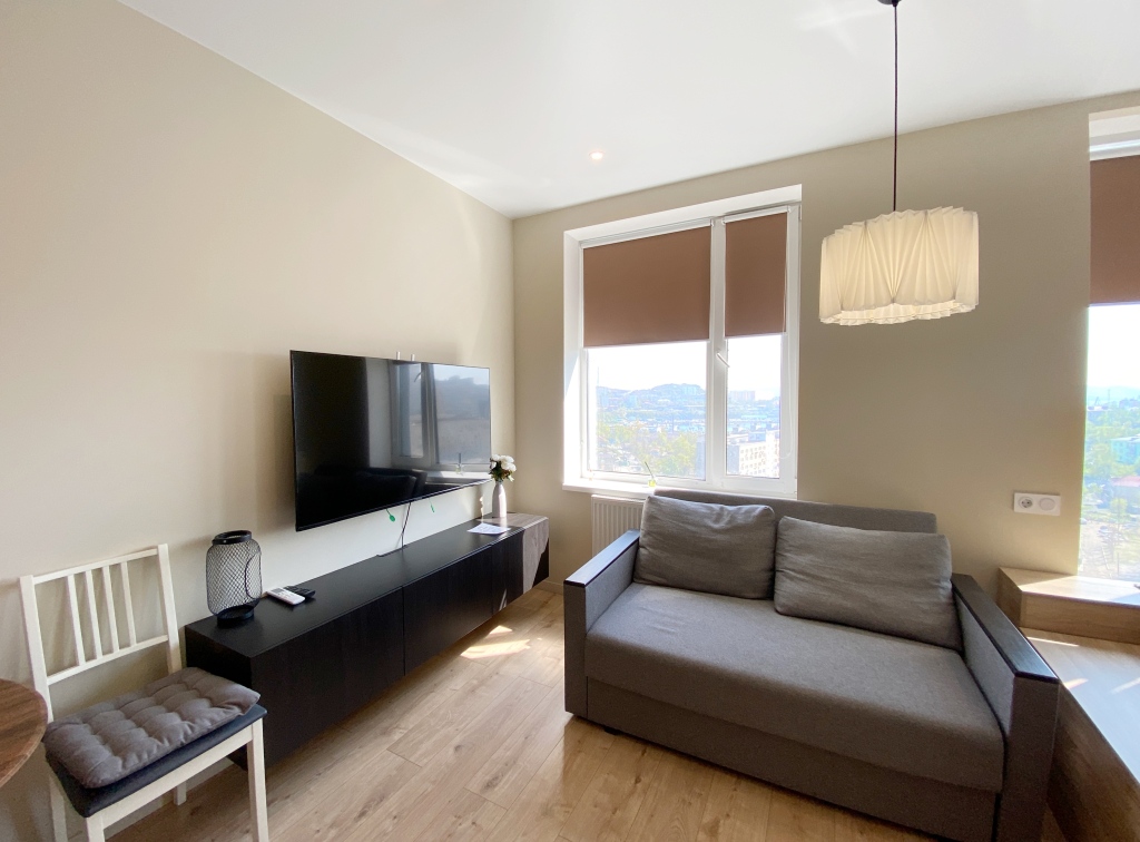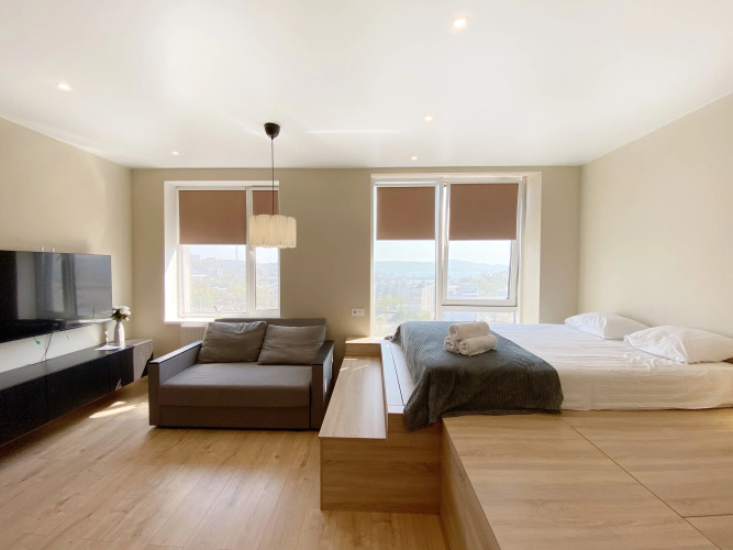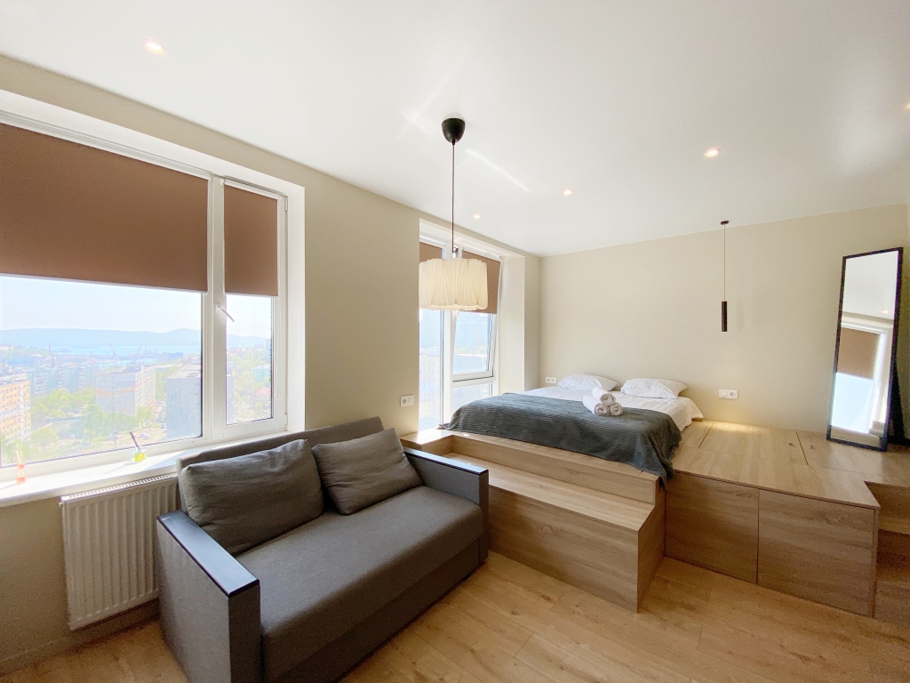 Апартаменты в ЖК Морион на Брянская 18 на 5 этаже находятся во Владивостоке, у бухты Золотой рог. Расположение дома позволяет добраться до любого района города. В пешей доступности расположен Мариинский театр, торговые центры, ресторан. Рядом находится продуктовый магазин.