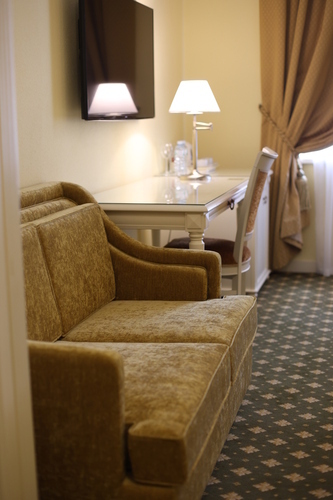В номере: двуспальная кровать, прикроватные тумбы, рабочий стол, кофейный столик, кресла, шкаф, ЖК телевизор, телефон, система кондиционирования, высокоскоростной доступ в интернет. В ванной комнате: душ, раковина, санузел