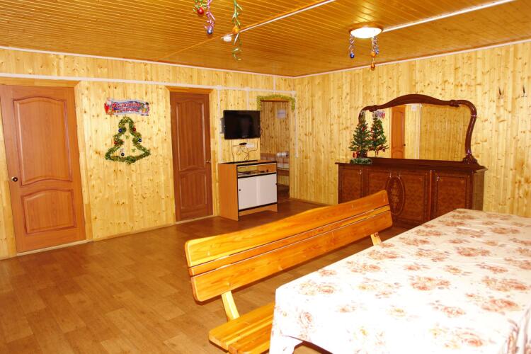 В номере вы найдёте душ, телевизор и тапочки. Оснащение зависит от выбранной категории номера.