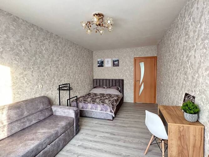 В квартире есть 3 односпальные кровати, двуспальная кровать и раскладной диван. Предоставляются постельное бельё, полотенца, подушки.