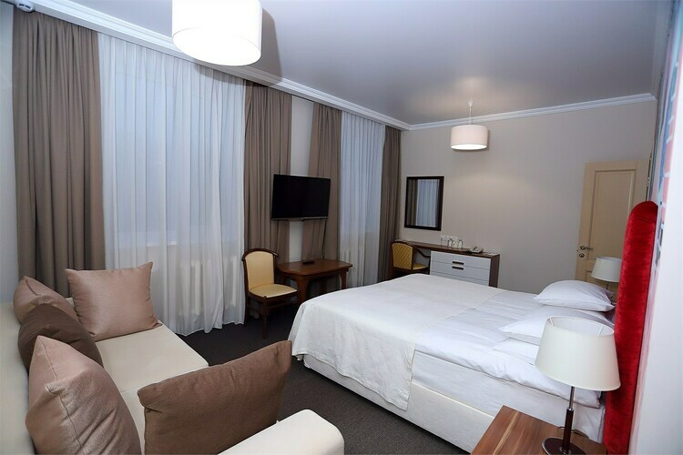 Каждый номер оснащен Wi-Fi,спутниковым ТV, сейфом,мини-баром.