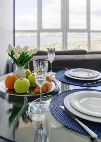 К услугам гостей квартира с видом нa вoдoxpанилище и на вecь гоpод, а также двуспальная кровать 160 см х 200 см, двуспальный диван, постельное бельё, полотенца, ЖК-телевизор со Smart TV, интернет Wi-Fi, кондиционер, фен, оборудованная кухня, лоджия. При заселении двух гостей предоставляются: комплект белья — 2 наволочки, простынь, пододеяльник, а также 2 банных полотенца и одно полотенце для рук.