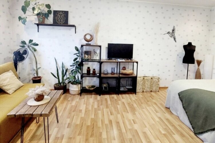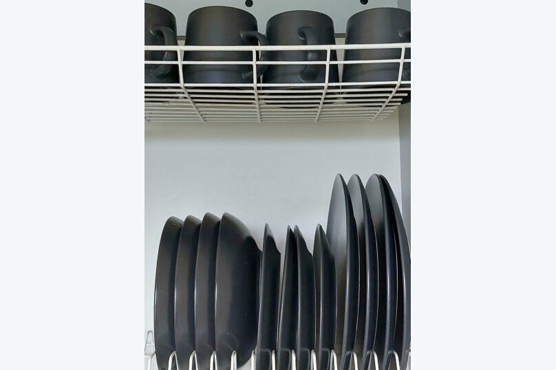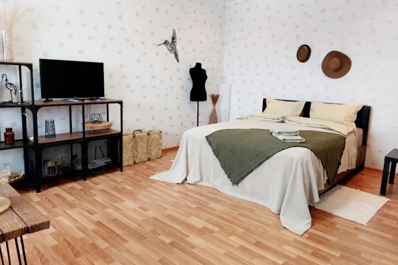 В апартаментах предоставляются следующие удобства: двуспальная кровать с матрасом, раздельные одеяла, подушки, газовая плита, холодильник, утюг, фен, шампунь, гель для душа, мыло для рук, телевизор, интернет Wi-Fi, микроволновая печь, посуда для приготовления и столовая посуда, комплект на каждого гостя.