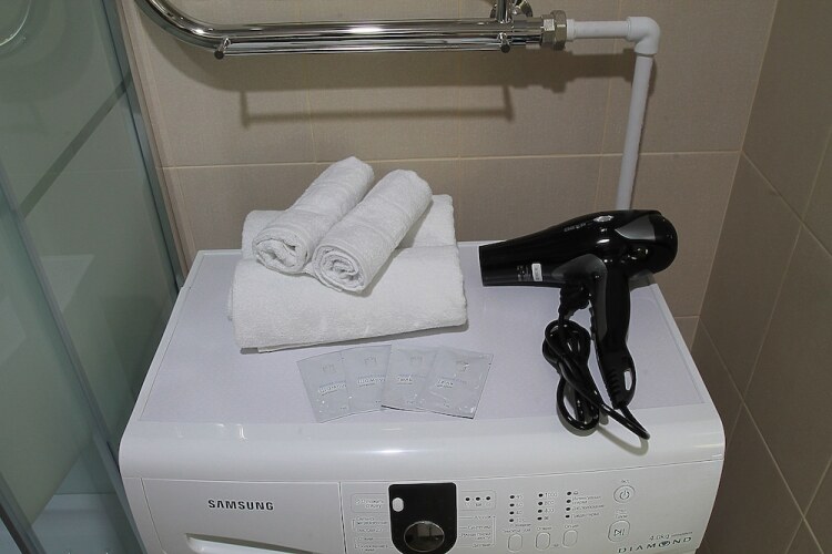 В номере вы найдёте душ, телевизор и тапочки. Оснащение зависит от выбранной категории номера.