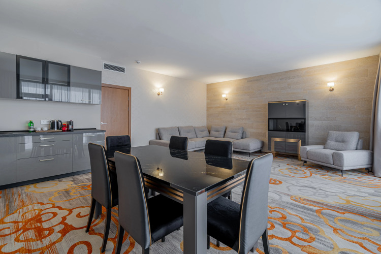 Номер уютно обставлен и оснащён необходимым, чтобы отдохнуть после долгого и насыщенного дня. Имеются телевизор и халат. Перечисленные услуги есть не во всех номерах.