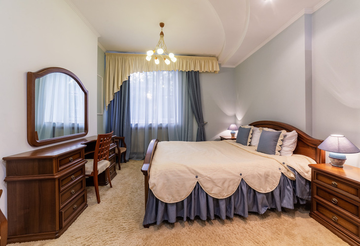 Просторный двухкомнатный двухместный номер. В номерах данной категории возможно размещение на дополнительном месте. Общая площадь номера 30кв.м. В номере двуспальная кровать, раскладной диван, прикроватные тумбы, шкаф, телевизор, холодильник, письменный стол,телефон, бесплатный Wi-Fi. В ванной комнате: ванна, туалет, банные принадлежности, фен. В стоимость входит: проживание, питание согласно выбранному тарифу.
