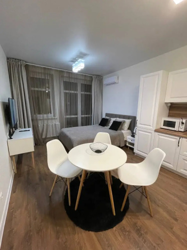 В комплексе работает охрана и ведётся видеонаблюдение. Подходит для размещения максимум 3-х человек. В квартире есть: мебель и бытовая техника, двуспальная кровать 140х200 с ортопедическим матрасом, раскладушка с матрасом и ортопедическим основанием 80x190 (дополнительное место), холодильник двухкамерный, стиральная машина с сушкой, индукционная электрическая плита, установлен фильтр для очистки питьевой воды, кондиционер, сетка от комаров на окнах, микроволновая печь, чайник, Wi-Fi, телевизор Smart-TV, утюг, гладильная доска, пылесос, столовые приборы, посуда, кастрюли, сковорода, кофе, чай, сахар, соль, средства гигиены (шампунь, кондиционер, гель для душа, мицеллярная вода для снятия макияжа, ватные диски, ушные палочки), фен, водонагреватель (на случай отключения горячей воды), глубокий душевой поддон 100х100, зонт, шторы блэкаут, постельное бельё, полотенца, панорамный вид из окна в город. Осуществляется влажная и сухая уборка со специальными средствами.