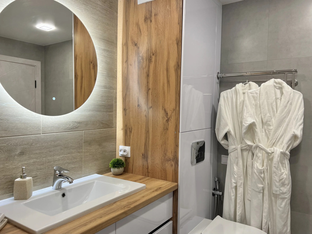 В номере гостей ждут телевизор и халат. Оснащение зависит от выбранной категории номера.