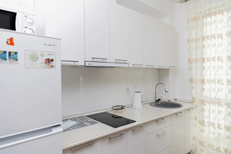 Апартаменты Современная студия на Мира 300 12 этаж, адрес на карте Южно-Сахалинск, проспект Мира, д.300к6, с описанием номеров и доступностью онлайн бронирования на сайте vashotel.ru , стоимость проживания и удобства.