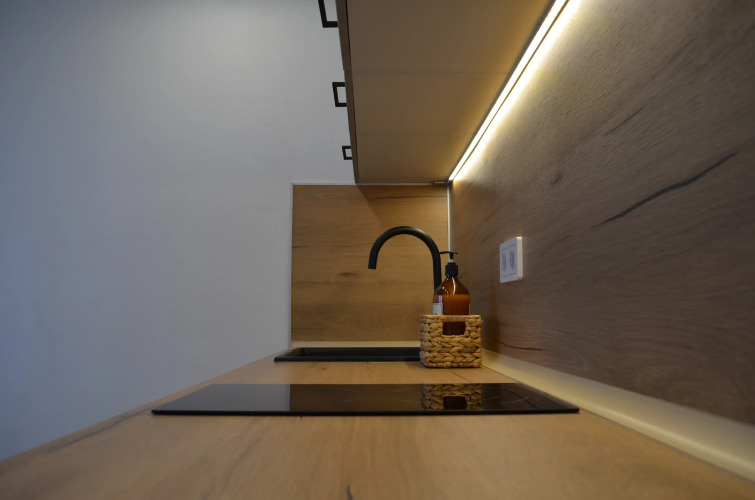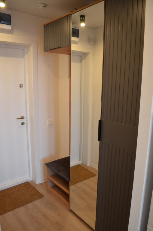 Во дворе — закрытая территория с детскими площадками и зонами отдыха. Площадь квартиры — 22 кв. м. Максимальное количество гостей — 2 человека. В наличии кровать 160×200, шкаф, круглый стол, письменный стол, постельное бельё, полотенца, сплит-система, микроволновая печь, холодильник, посудомоечная машина, электрическая плита, стиральная машина, душевая кабина, фен, утюг, сушилка для белья, гладильная доска. Есть телевизор и Wi-Fi.