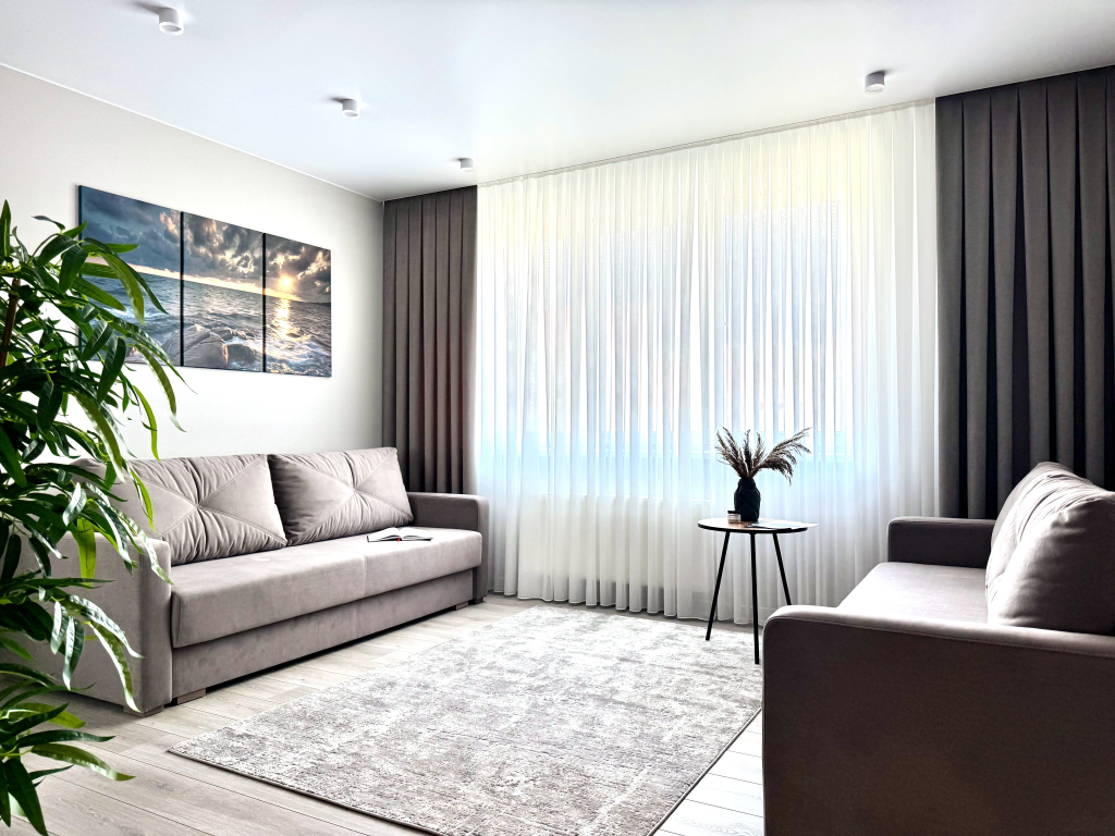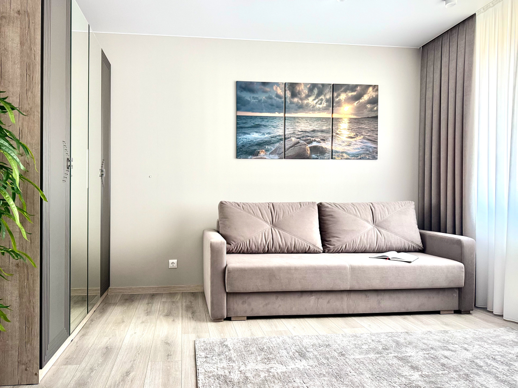 Квартира 2-к 72 кв. м., расположена в Зеленоградске. На территории жилого комплекса находятся: зоны отдыха, продуктовые и хозяйственные магазины, бесплатная парковка, кофейни, детская площадка.