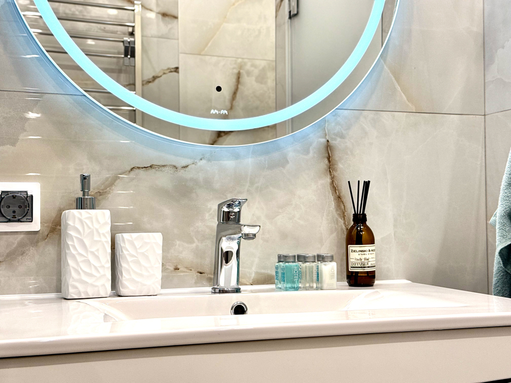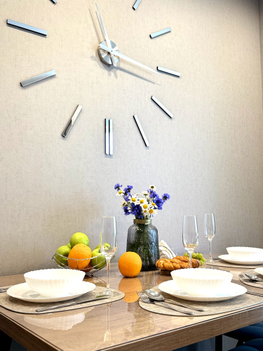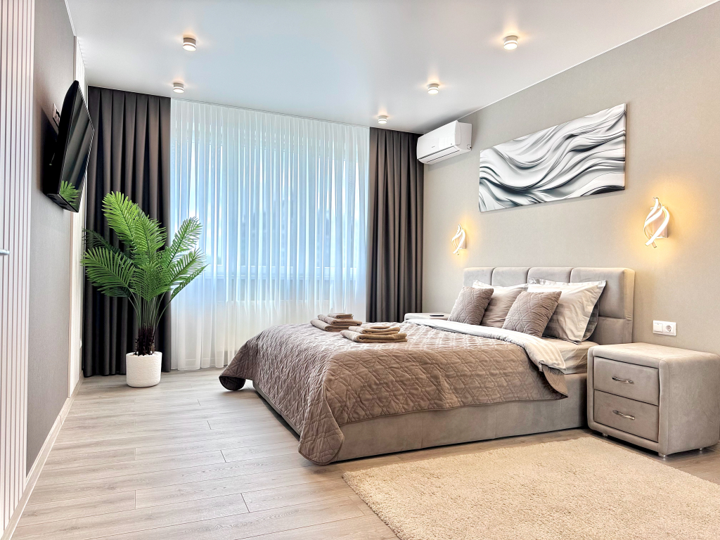 В квартире есть необходимое для отдыха до 6 человек: двуспальная кровать с ортопедическим матрасом Askona 200×160, два ортопедических двуспальных дивана с независимыми блоками пружин 200×140, кухня оснащена всем необходимым: холодильник, газовая поверхность, духовой шкаф, посудомоечная машина, микроволновая печь, чайник, блендер, тостер, миксер и посуда, стиральная машина, фен, утюг, гладильная доска, сушилка для одежды и пылесос, два ЖК-телевизора, Wi-Fi, кондиционер, душевая с тропическим душем, подогрев полов, рулонные шторы Black out на солнечной стороне, москитные сетки на окнах, постельное бельё и три полотенца для каждого гостя, а также шампунь, гель для душа, кондиционер для волос и жидкое мыло, детская ванночка, детское сиденье на унитаз и детский горшок, застеклённая лоджия.