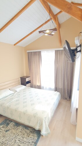 В номере вы найдёте телевизор. Оснащение зависит от выбранной категории номера.