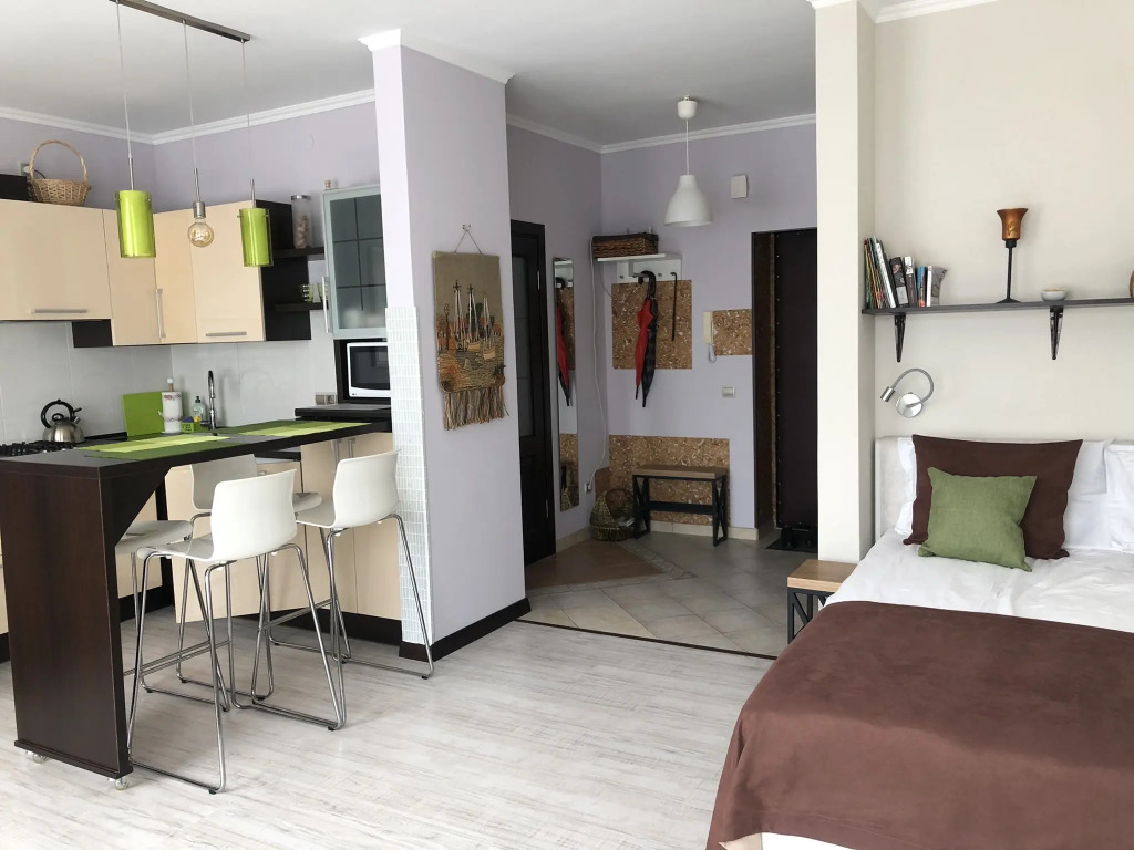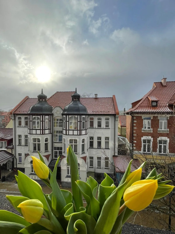 Апартаменты в самом центре Зеленоградска, адрес на карте Зеленоградск, Курортный проспект, д.26, с описанием номеров и возможностью онлайн бронирования на сайте ВашОтель.RU , цены проживания и удобства.