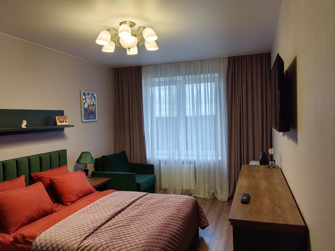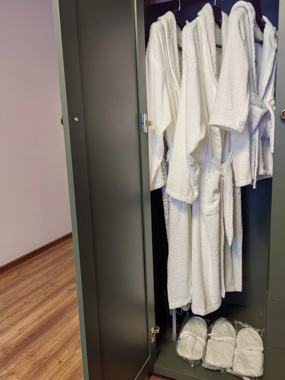 В номере вы найдёте телевизор и халат. Оснащение зависит от выбранной категории номера.