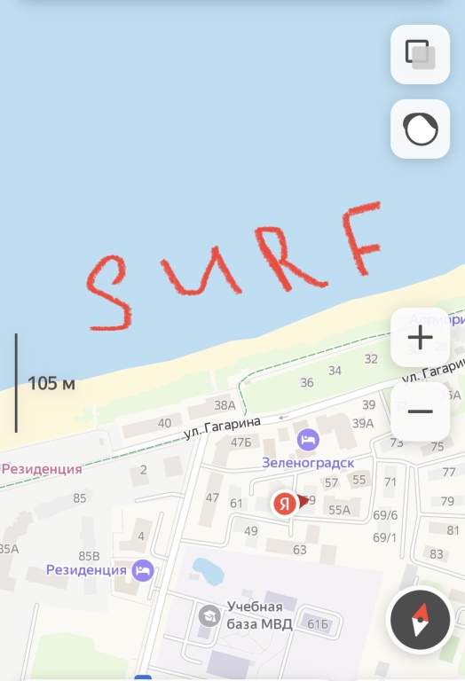 адрес на карте Зеленоградск, Гагарина улица 61, с описанием