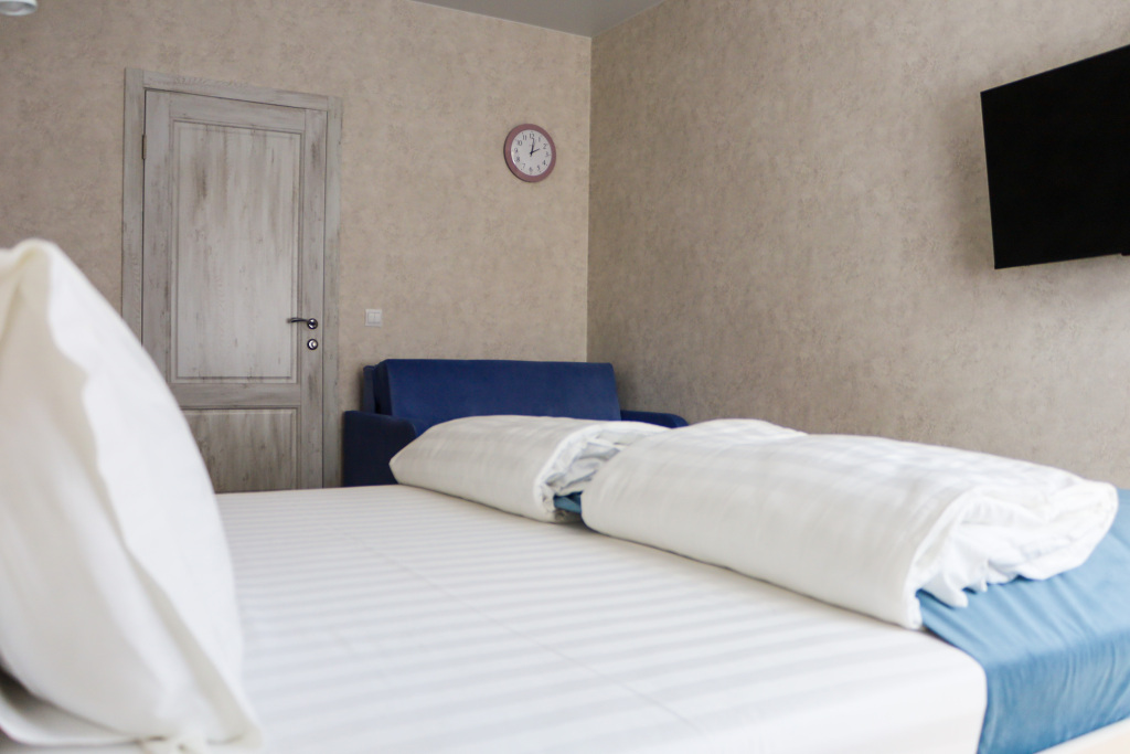 В номере вы найдёте телевизор. Оснащение зависит от выбранной категории номера.