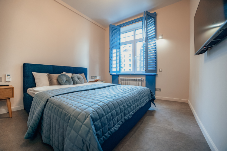 В апартаментах возможно комфортное размещение до 4 человек: двуспальная кровать, двуспальный раскладной ортопедический диван.