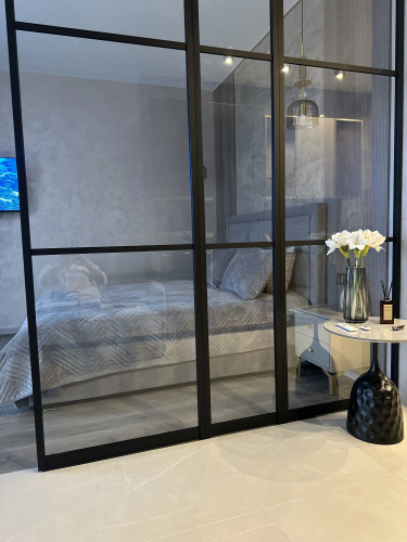 В апартаментах предусмотрены двуспальная кровать и раскладной диван для 2 гостей, установлена капсульная кофемашина, подготовлены полотенца, шампунь и гель для душа. По периметру здания установлены камеры видеонаблюдения.