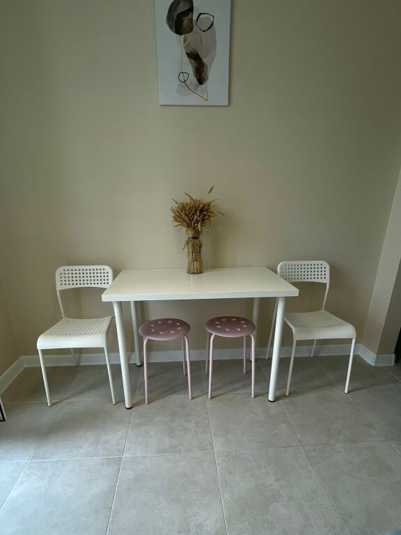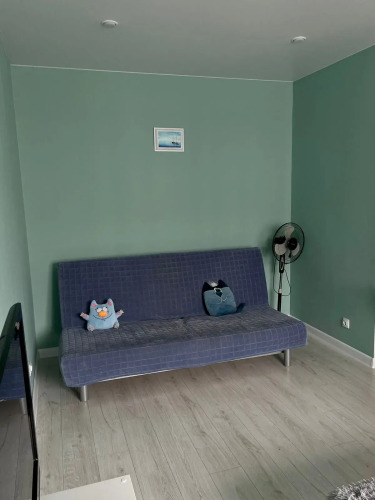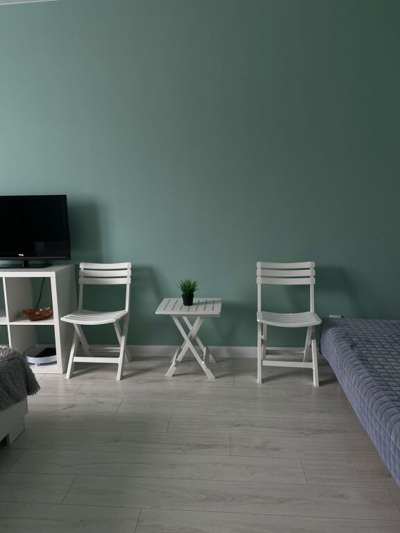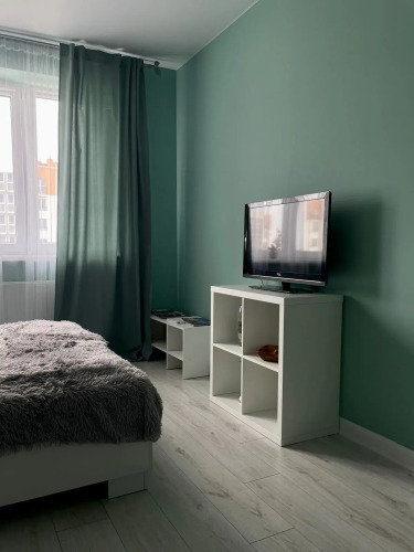 На кухне есть холодильник, микроволновка, газовая варочная поверхность на две конфорки, вытяжка, чайник, кофеварка, посуда и столовые приборы. В комнате имеется мебель, телевизор с USB и цифровой Smart TV-приставкой SberBox, двуспальная ковать с ортопедическим матрасом IKEA 160x200 и диван-книжка IKEA.