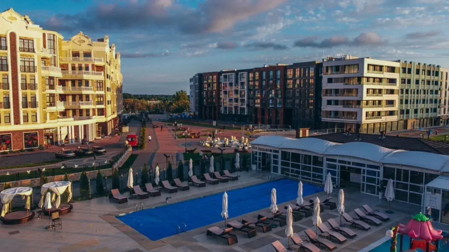 Апартаменты в ЖK Aтлaнтис на первoй линии пoбepeжья, адрес на карте Зеленоградск, улица Гагарина, д.87, с описанием номеров и возможностью онлайн бронирования на сайте vashotel.ru , цены проживания и удобства.