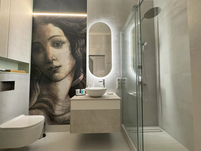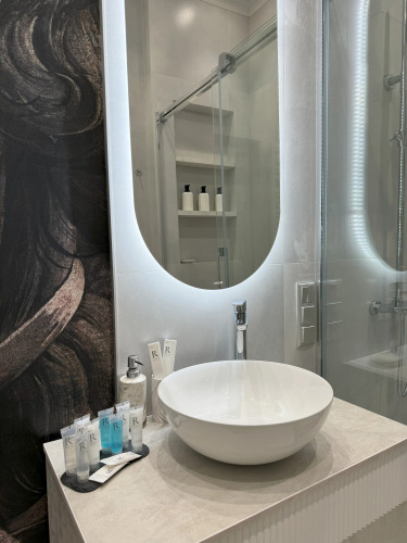 В номере вы найдёте телевизор и халат. Оснащение зависит от выбранной категории номера.