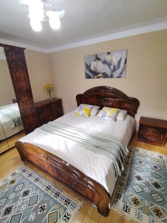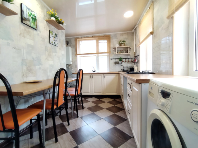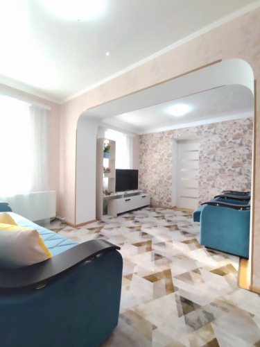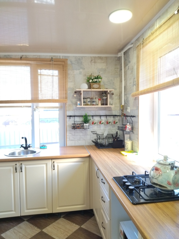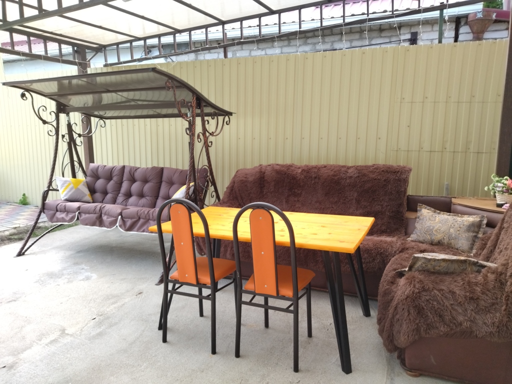 В гостевом доме имеется двуспальная кровать с ортопедическим матрасом, двухместный раскладной диван, два раскладных кресла, холодильник, микроволновая печь, чайник, посуда, фен, гладильная доска, утюг, сушилка для белья, Wi- Fi, телевидение, стиральная машина, постельное бельё, полотенца.