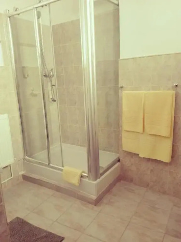 В номере вы найдёте душ, телевизор и тапочки. Оснащение зависит от выбранной категории номера.