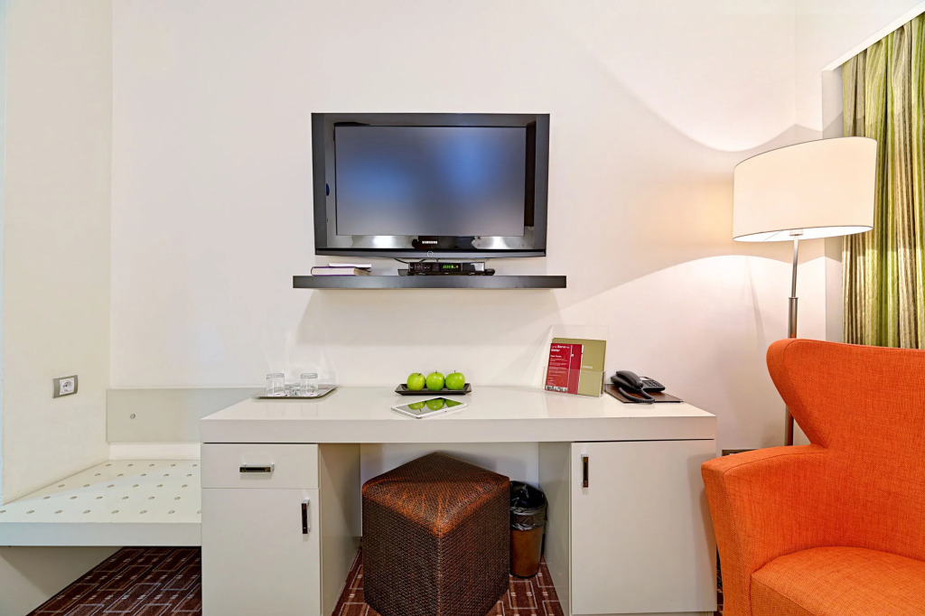 В номере вас будут ждать телевизор. Оснащение зависит от выбранной категории номера.
