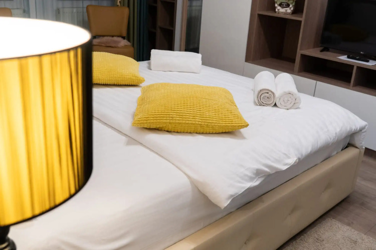 Номер уютно обставлен и оснащён необходимым, чтобы отдохнуть после долгого и насыщенного дня. Имеются телевизор. Оснащение зависит от выбранной категории номера.