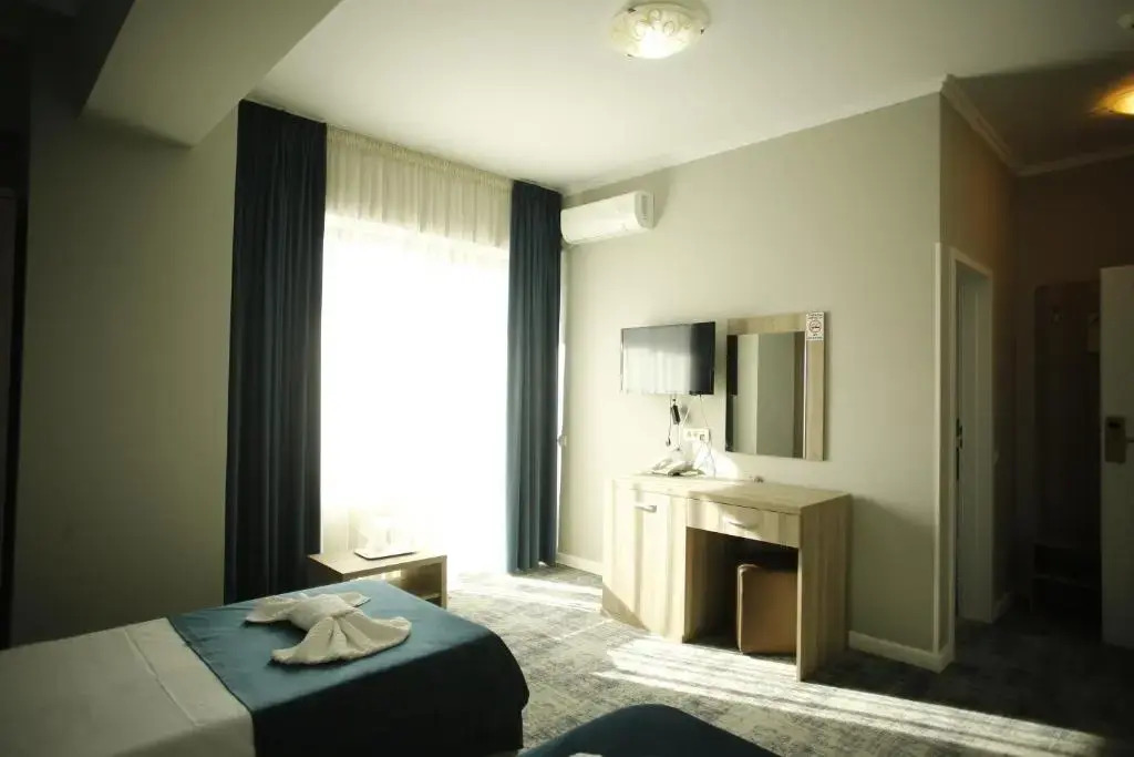 В номере вас будут ждать телевизор и мини-бар. Оснащение зависит от выбранной категории номера.