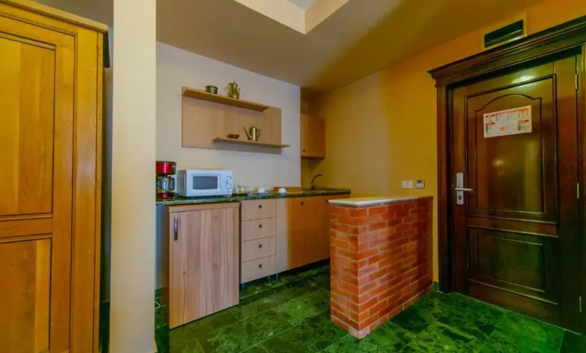 Чтобы вы могли отдохнуть после долгого дня, в номере есть душ, телевизор, мини-бар, халат и тапочки. Оснащение зависит от выбранной категории номера.