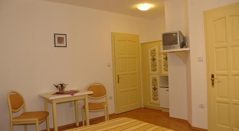 В номере вы найдёте душ и телевизор. Оснащение зависит от выбранной категории номера.