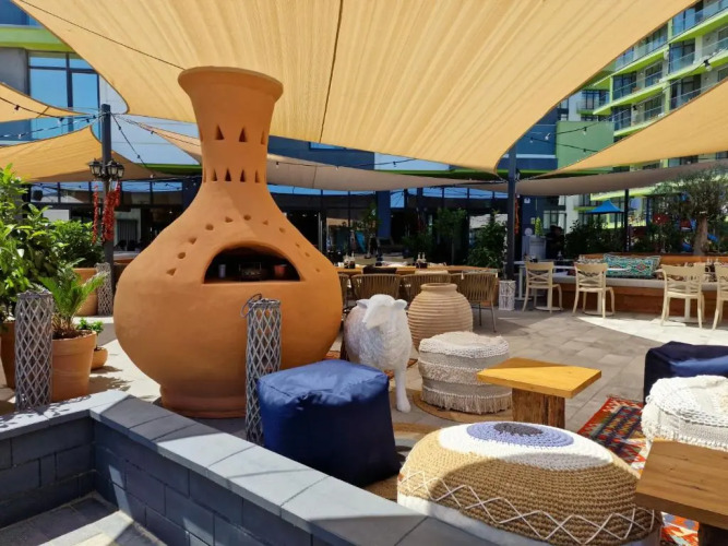 Всё, что нужно для отдыха, на одной территории! Курорт «Royale Sundance Studio 8 in Alezzi Beach Spa Pool» расположен в Мамая-Сат. Этот курорт находится в центре города. Утром — выпейте кофе, наблюдая из окна за жизнью города.