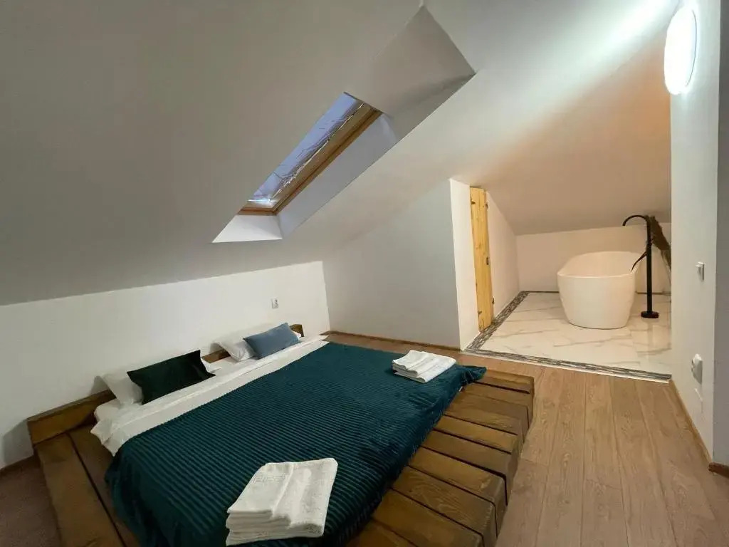 Отель YamaLuxe Apartments - Luxurious attic with bathtub in the bedroom, адрес на карте Клуж-Напока, 19 Strada Răchitei ap. 7, et. 3, с описанием номеров и возможностью онлайн бронирования на ресурсе vashotel.ru , стоимость проживания и удобства.