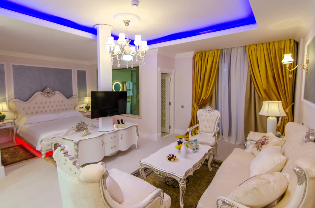 Здесь будем баловать себя водными процедурами: есть аквапарк, крытый бассейн и открытый бассейн. Дети будут рады! Работает детская игровая комната. Сотрудники отеля по запросу организуют гостям трансфер. Удобно для гостей с ограниченными возможностями: на верхние этажи гостей поднимает лифт.