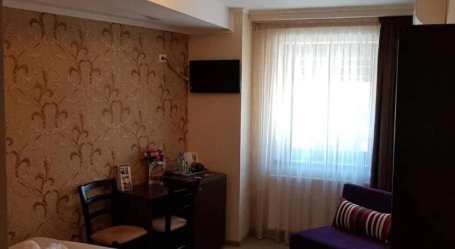 Номер уютно обставлен и оснащён необходимым, чтобы отдохнуть после долгого и насыщенного дня. Имеются душ, телевизор, мини-бар, халат и тапочки. Оснащение зависит от выбранной категории номера.